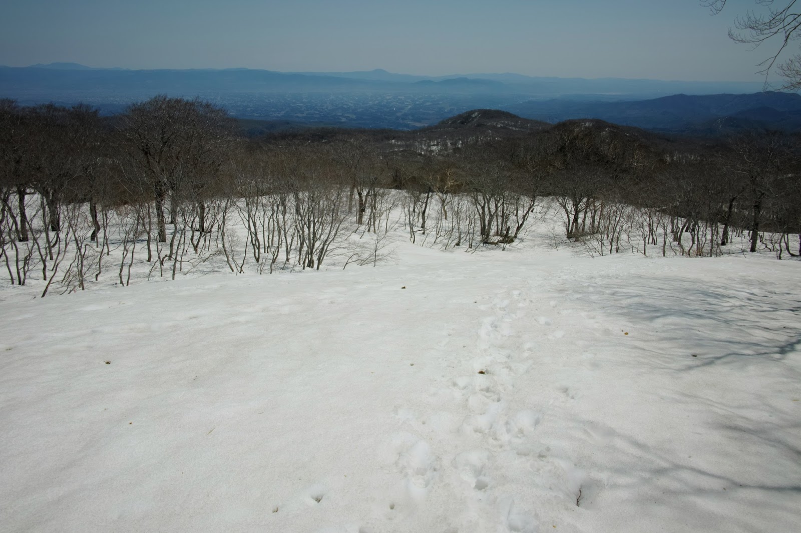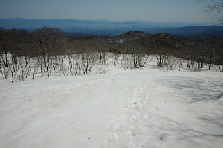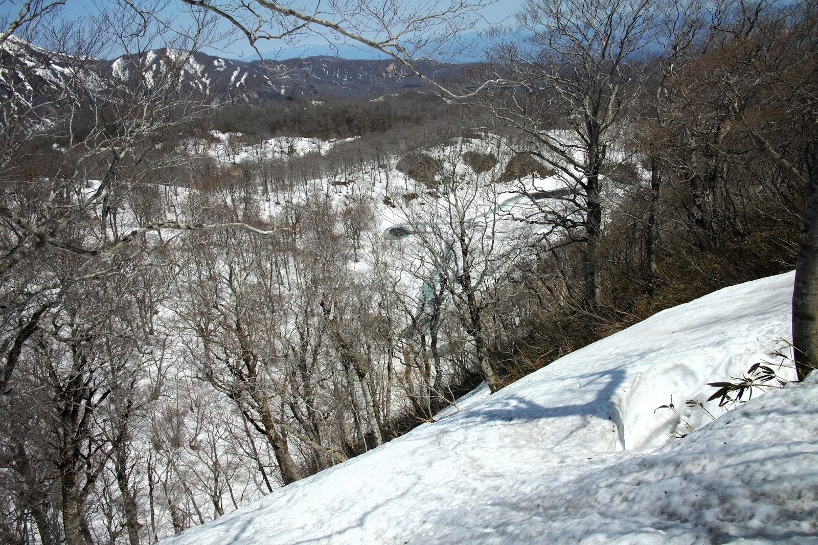 気温が上がり雪が融け踏み跡が不明瞭になり、視界から赤テープも見えなくなり、不安がよぎる。