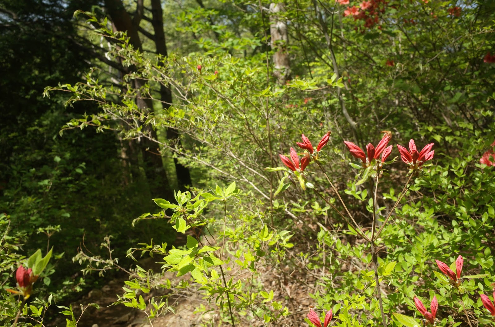 | 尾根道ではツツジが咲き始めていた |