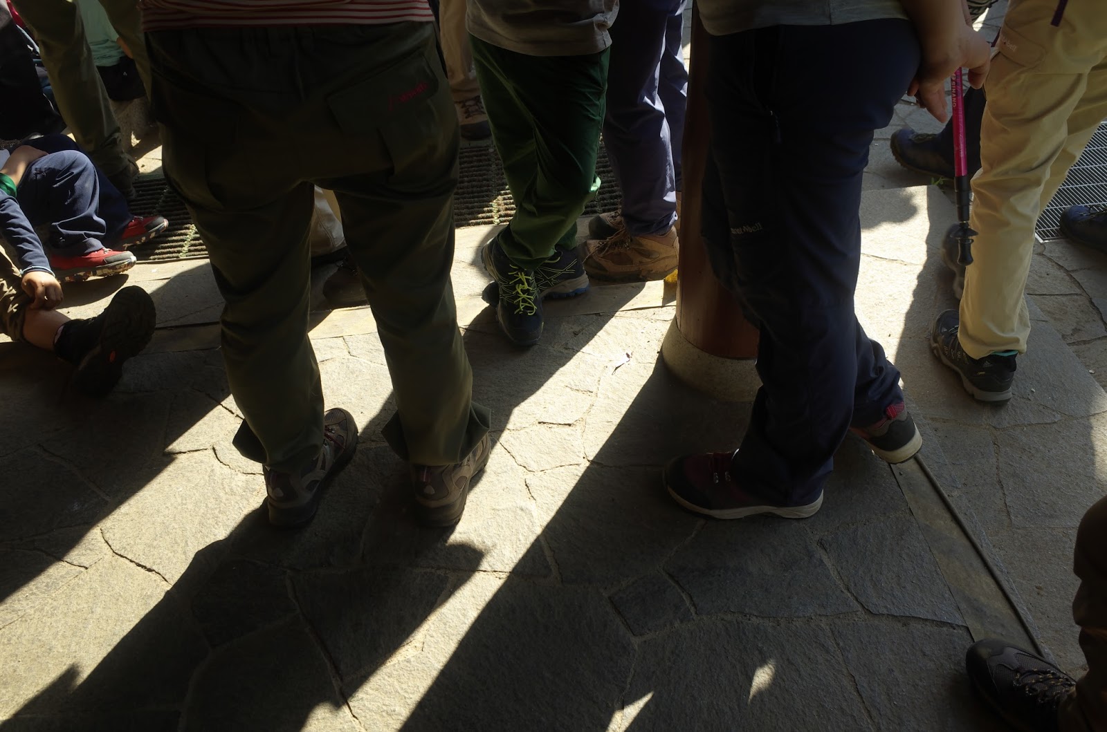 | バスを待つ登山者たち |