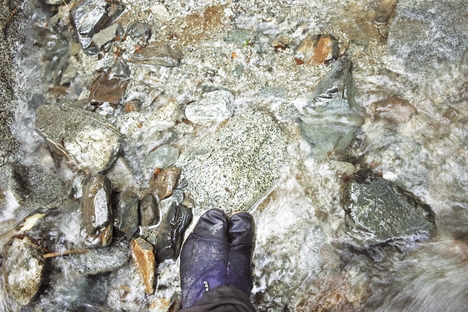 ここまできて、昨日の深酒がこたえる。また地下足袋は濡れるときつくなり足が痛くなる。道は沢沿いとなるため石が足裏を刺激して痛い。かなりペースを落としつつも気持ちのいい清流歩きを続け15時にスタート地点に着いた。気がつくとヘリの音は止んでいた。多分、行方不明者が見つかったのだろう。ご冥福を祈る。