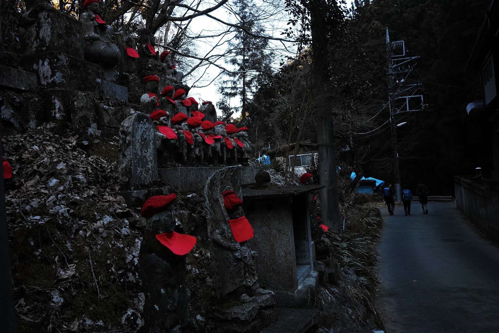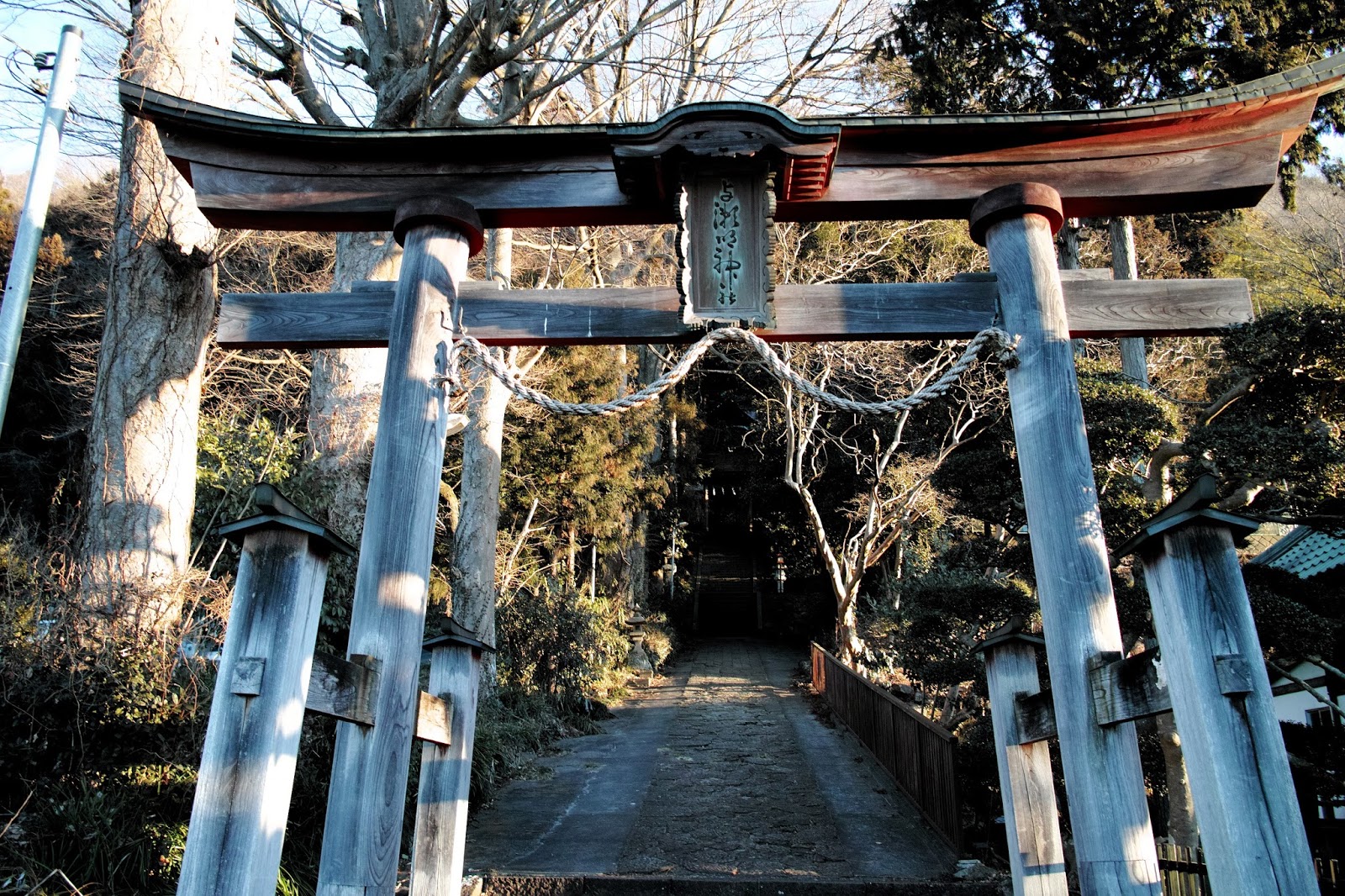 早朝5時に自宅をでて八王子駅で松本行きに乗り継ぎ相模湖駅に。下車した乗客は私を入れてほんの数人。無人の改札口を出て国道20号線を甲府方面へ、慈眼寺を目指して歩く。いつも車で中央道を走っているときに見える寺だ。道標に従い国道を右に折れ小道を登り始める。すると最初に目に入ったのはなんと寺の山門ではなく神社の鳥居であった。これは寄瀬神社の鳥居。その鳥居をくぐり、右手に慈眼寺を観ながら参道の階段を登る。まさに寺と神社が一体となっている。神仏混同の遺物だ。後で調べたら明治になって仏神分離がなされたそうだ。寺も神社も朝の静けさに囲まれていると言いたいところだが、実際は直下を通る中央道の騒音が鳴り響いている。