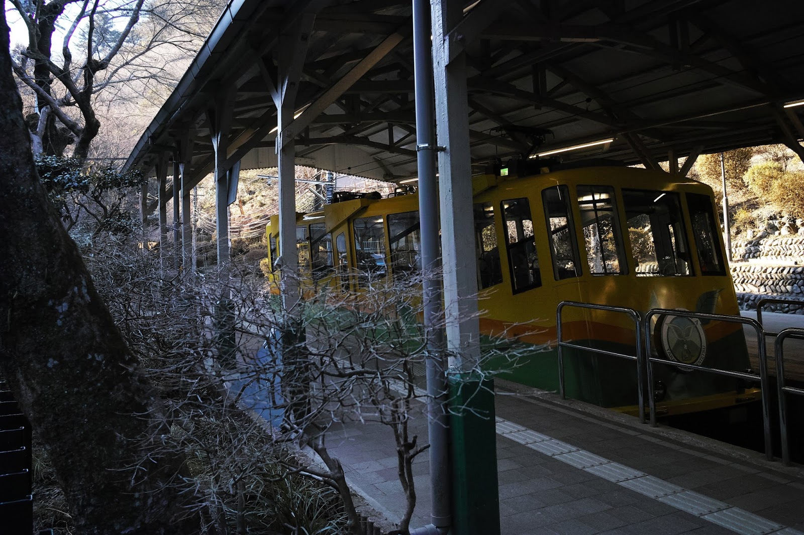 | 高尾山へのケーブル。日本一の斜度が売り。 |