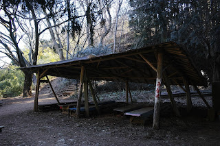 小仏峠を過ぎ道は城山までの登り返しとなる。階段状の道をいっきに登りつめて城山の広場にでる。さあランチだ。ポットの湯で味噌汁を作りパンを食す。変な組み合わせだが暖かい味噌汁が身体に滲みこむ。