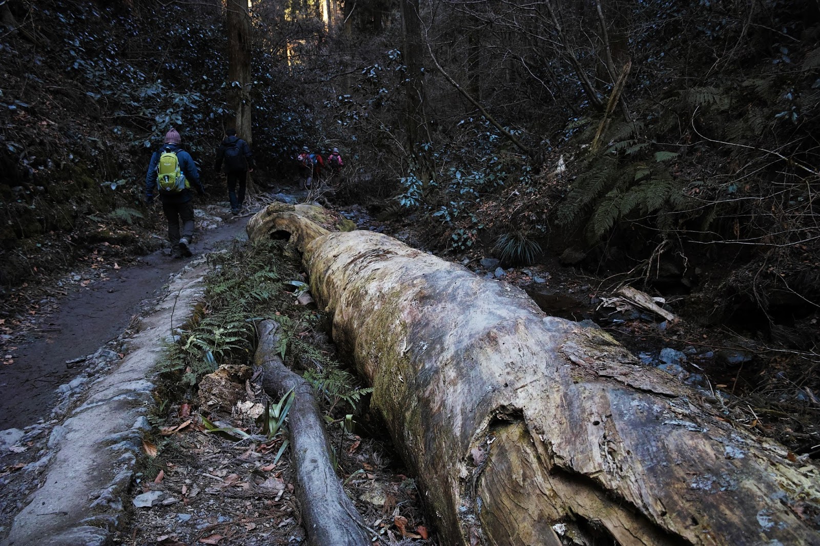 6号路は沢沿いの道で蛇滝など霊場を通る。やがてケーブル沿いの道となり高尾山口駅に到着。高尾の歴史文化を体験する8時間の歩きであった。