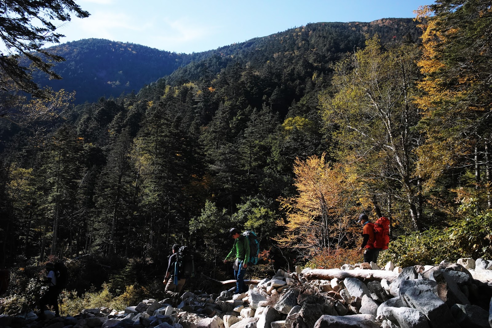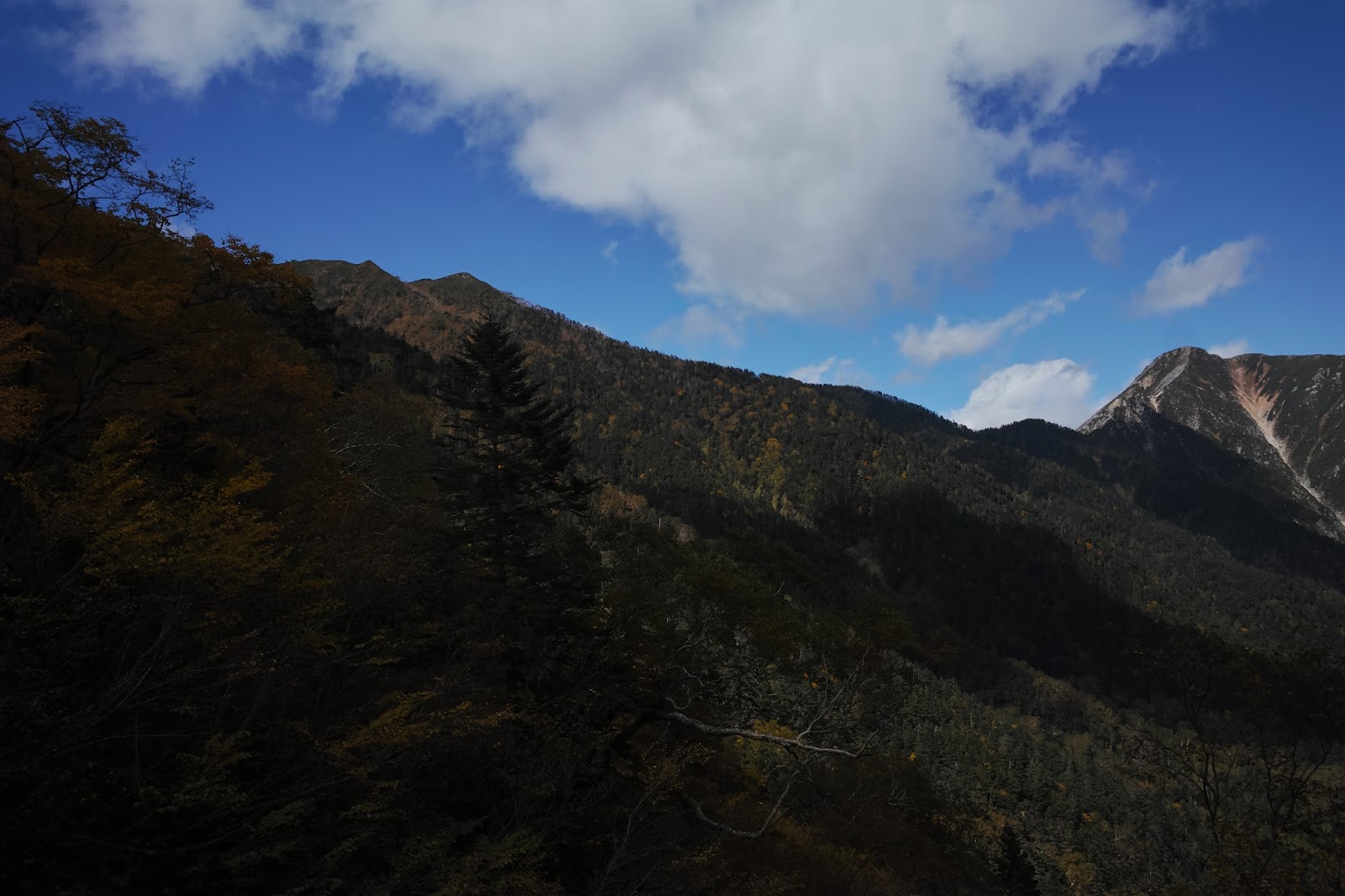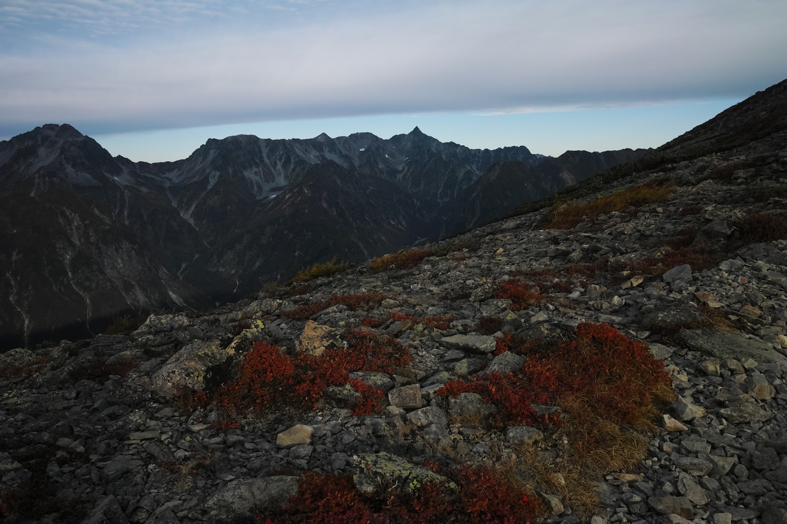 そんな記憶が今度の計画のきっかけになったことは間違いない。ことしも大きな山に入れるのもあと数週間。紅葉を〆としてどこの山小屋もシーズンを終える。晴天が約束された週末に私は二泊で北アルプスにでかけることにした。一人旅には静かな山道がいい。上高地や涸沢の喧騒をさけ、安曇野側から蝶に登り、そして記憶の中に一時停止されているあの常念への尾根道を登ってみることにした。