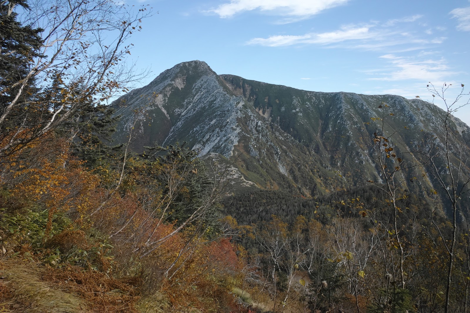 | 中腹から。常念を見上げる角度も低くなってきた |