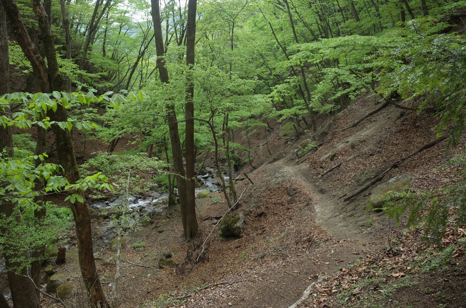 | 沢沿いの下山道 |